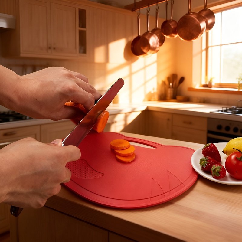 ● لوح تقطيع الفواكه مصنوع من مواد عالية الجودة، آمنة على الصحة وسهلة التنظيف، مما يضمن لك استخداماً يومياً مريحاً وصحياً في المطبخ. ● تصميم عملي ومتين يمنع انزلاق الفواكه أثناء التقطيع، مما يوفر لك دقة وسهولة في التحضير ويحافظ على سلامتك أثناء الاستخدام. ● مقاوم للخدوش والرطوبة، ويمكن استخدامه لتقطيع جميع أنواع الفواكه والخضروات دون أن يمتص الروائح أو يتغير لونه مع الوقت. ● مزود بحافة مخصصة لجمع السوائل، مما يحافظ على نظافة سطح العمل ويساعدك في تحضير الطعام بسرعة وكفاءة. ● حجمه المثالي وخفة وزنه يجعلان من السهل تخزينه أو حمله في النزهات والرحلات، ليكون رفيقك المثالي في كل مكان.